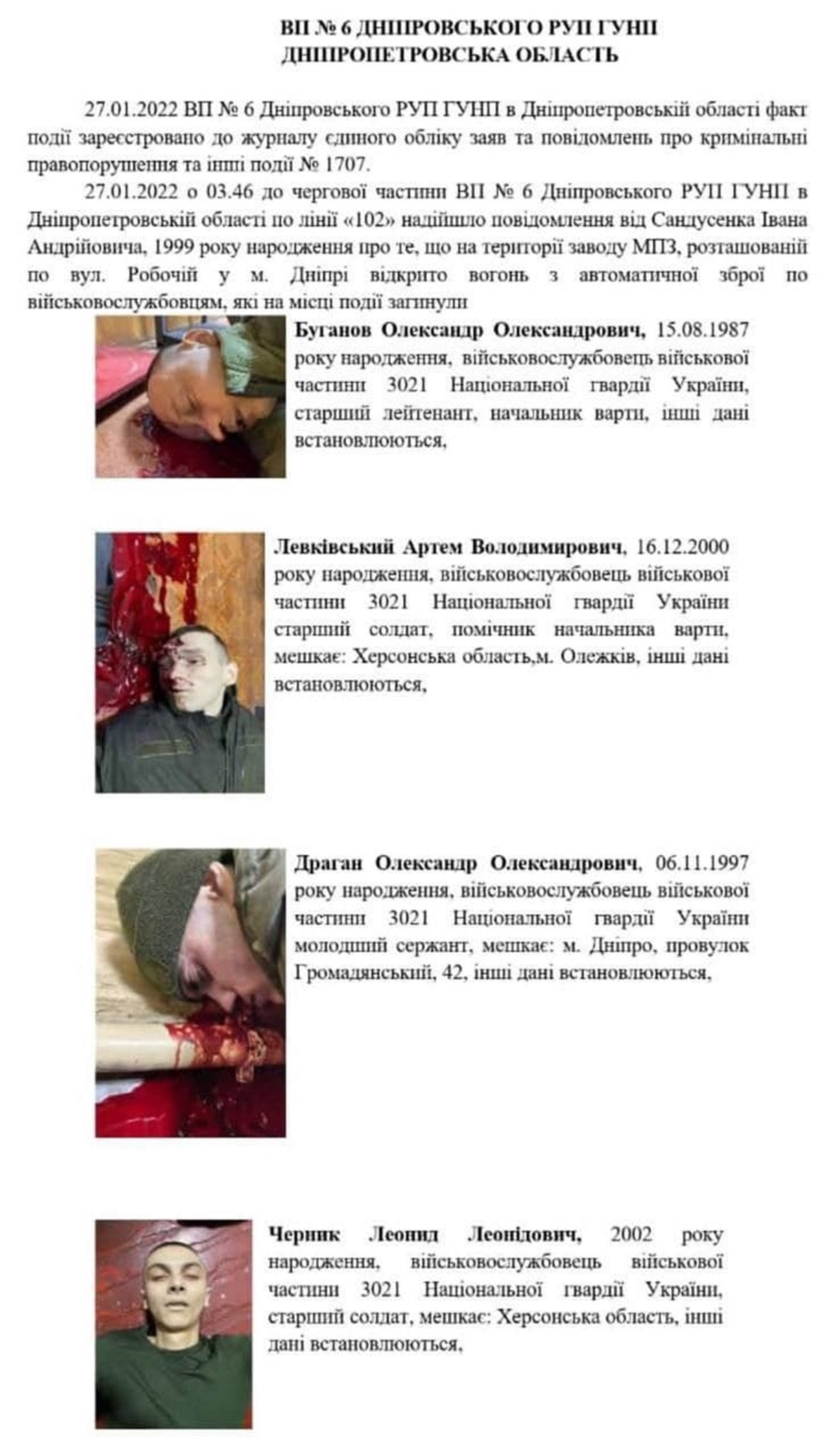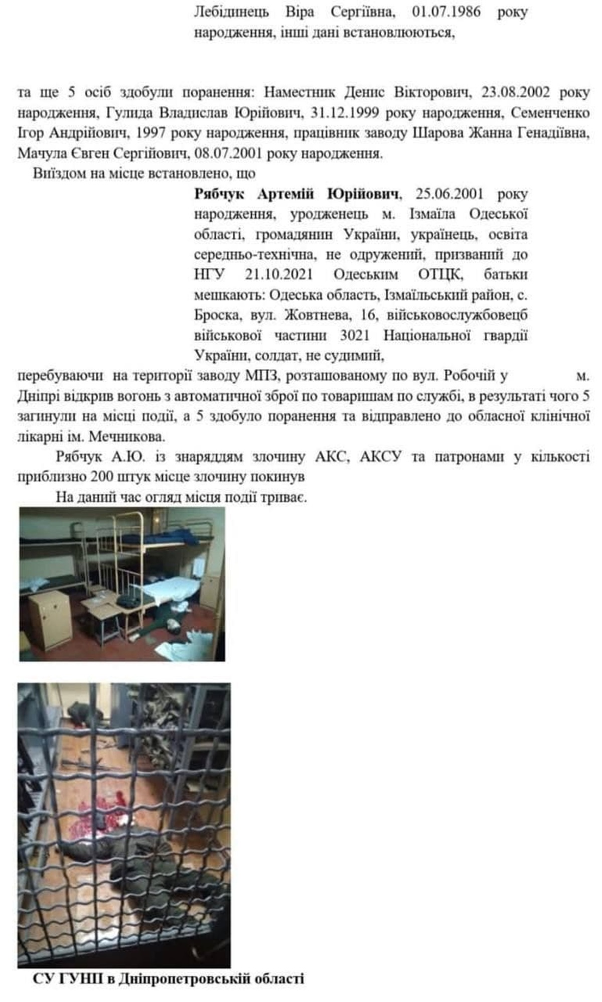 Установлено, что подозреваемый - военнослужащий Национальной гвардии Украины, 2001 года рождения, из Одесской области, сообщает Нацполиция.