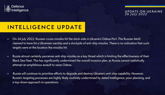 "Россия будет продолжать ухудшать и уничтожать противокорабельные возможности Украины.", — говорится в сообщении.