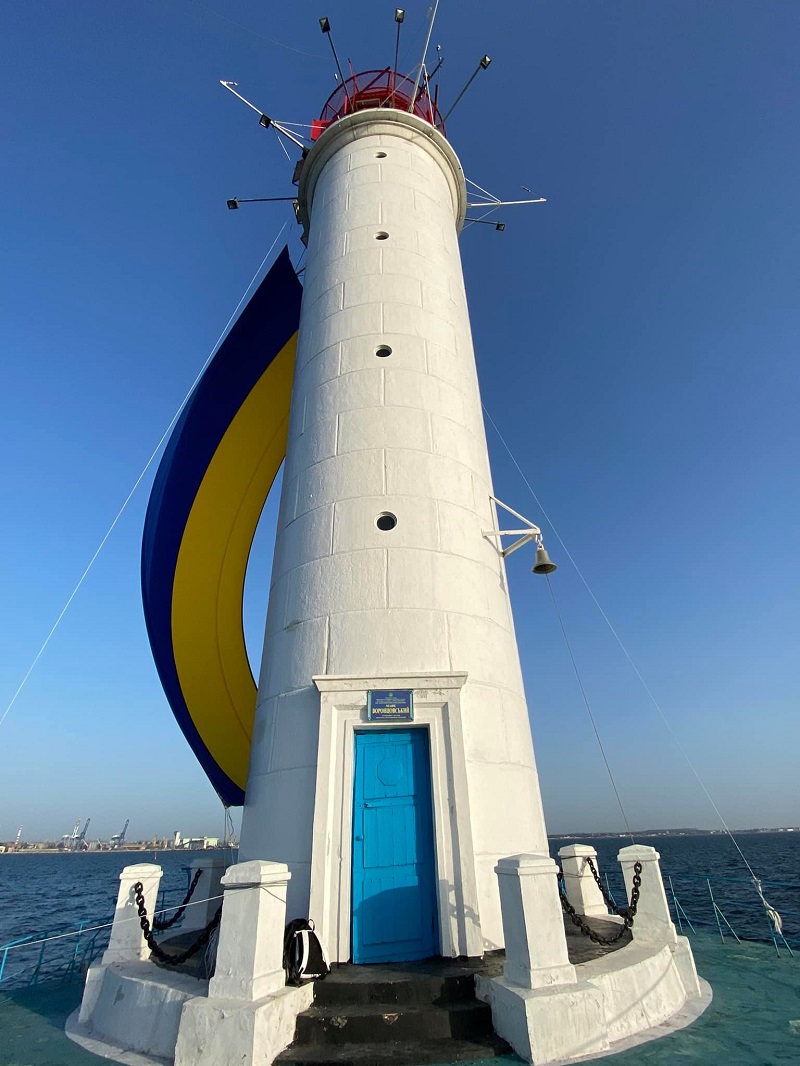 Традиционно государственный флаг разместили на Воронцовском маяке – визитке Одессы, на восходе солнца.