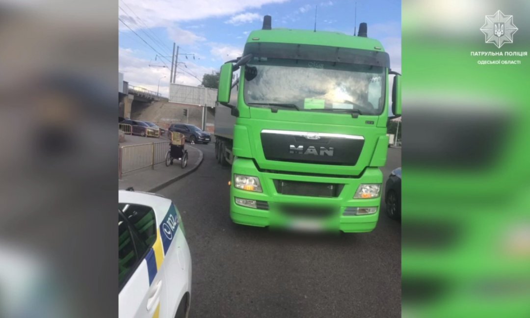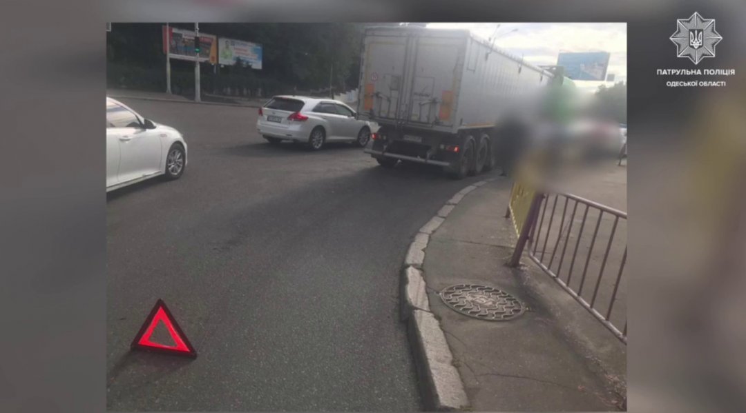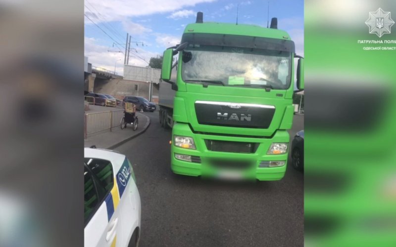 В Одессе водитель грузовика MAN на повороте наехал на женщину в инвалидной коляске.