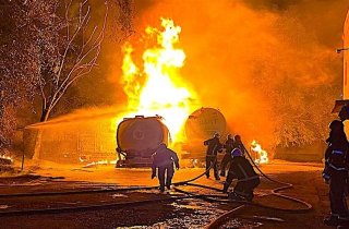 Огнем было уничтожено четыре грузовика и все вокруг на площади около ста квадратных метров. В тушении пожара пятью стволами принимали участие пять единиц техники и 16 человек личного состава спасателей.