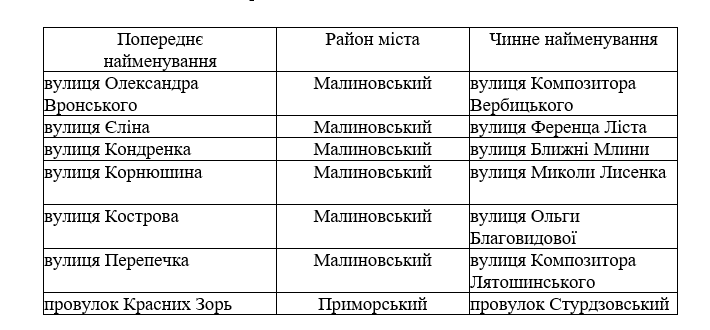 - улица в честь большевика Александра Вронского переименована в честь композитора Михаила Вербицкого;