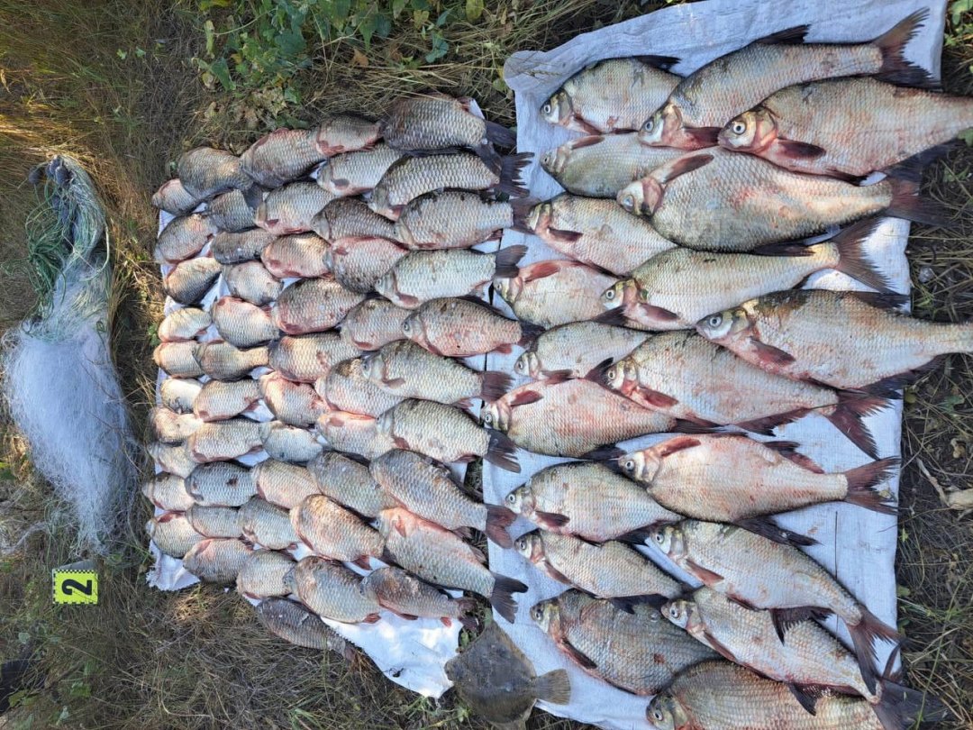 Правоохранители изъяли у правонарушителей почти 200 метров запрещенных сетей и незаконный улов – карасей, лещей и глоссы общим весом 106 кг.