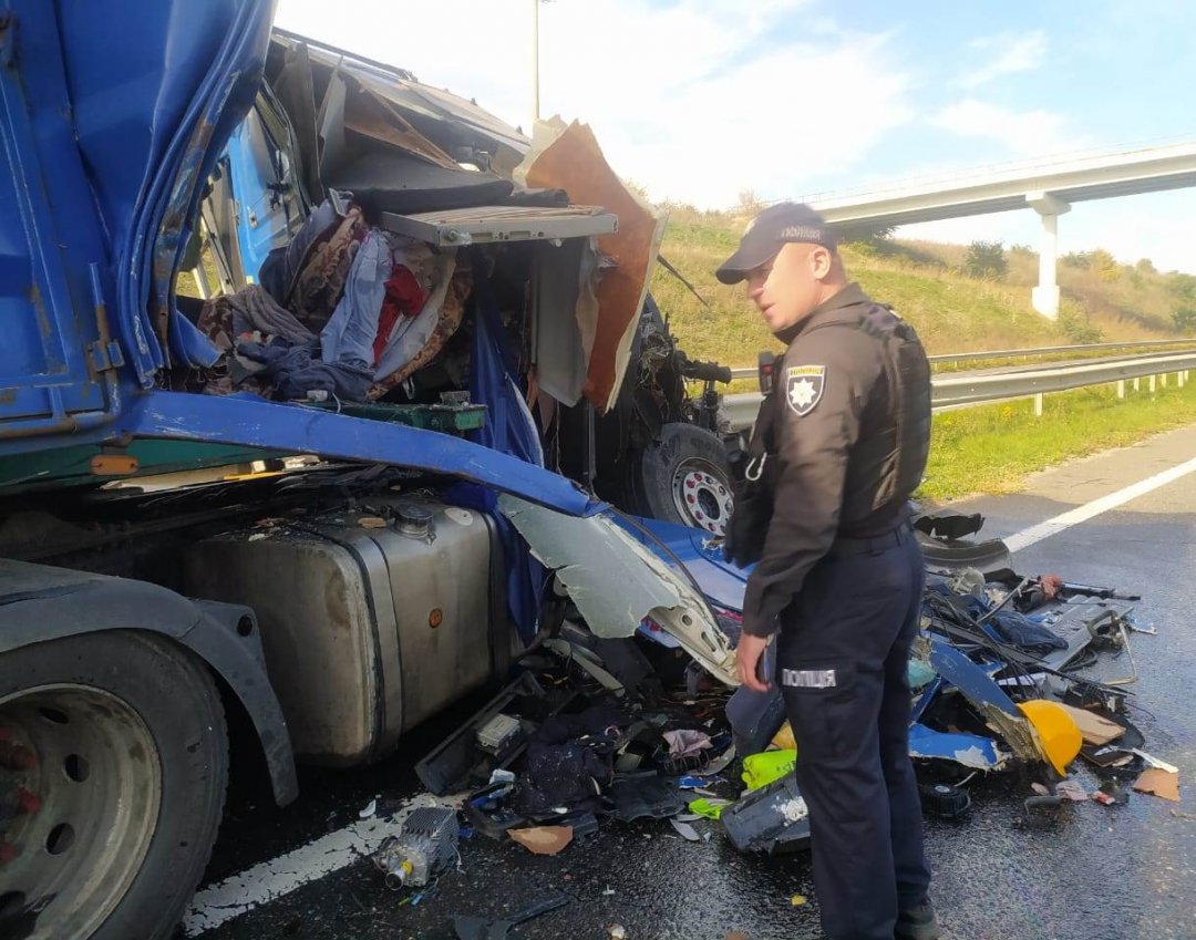Дорожно-транспортное происшествие произошло на 312 км автомобильной дороги «М-05 Киев – Одесса» с участием тяжеловесных транспортов.