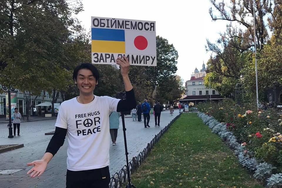 Его акция Free Hugs For Peace направлена на поддержку Украины. Проекту Коичи с объятиями уже более 10 лет.
