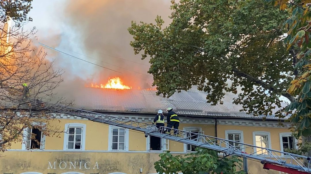 На Греческой, 32 в эти минуты горит ресторан "Моника". Сейчас на места работают спасатели, тушащие огонь на крыше здания.