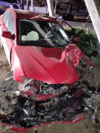 В Балте в Одесской области пьяный водитель автомобиля Mazda не справился с управлением и столкнулся с электроопорой. Двое пассажиров автомобиля были госпитализированы в реанимацию.