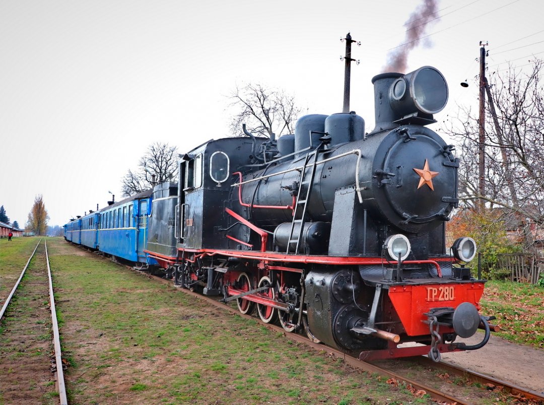 Туристов, собравшихся со всех уголков Украины, в том числе из Одессы, Ужгорода, Ровно, Киева и даже из Польши, ждал старый паровоз Гр-280, выпущенный в 1950 году и 4 вагончика Pafawag - тоже раритетные, изготовленные в Польше в конце 1950-х. х. Хотя именно в этих вагонах и перевозят пассажиров регулярные пригородные рейсы Гайворонской узкоколейки.