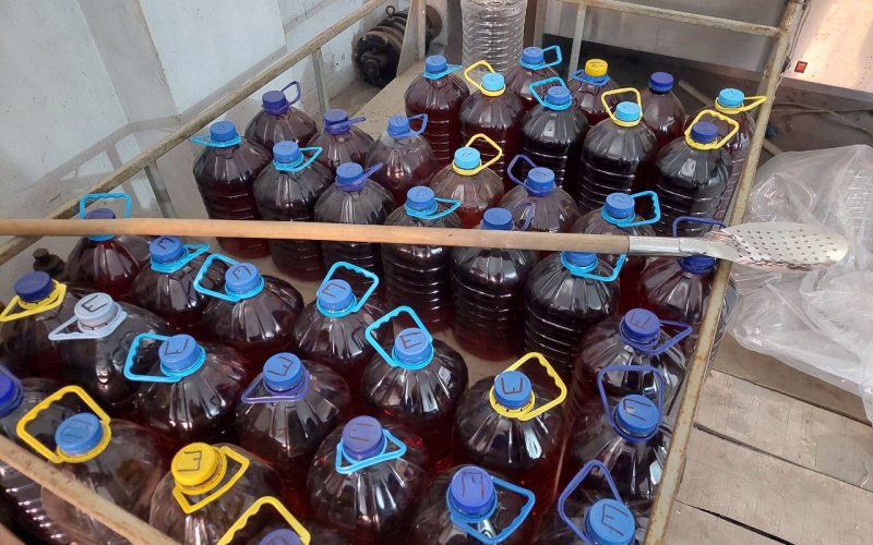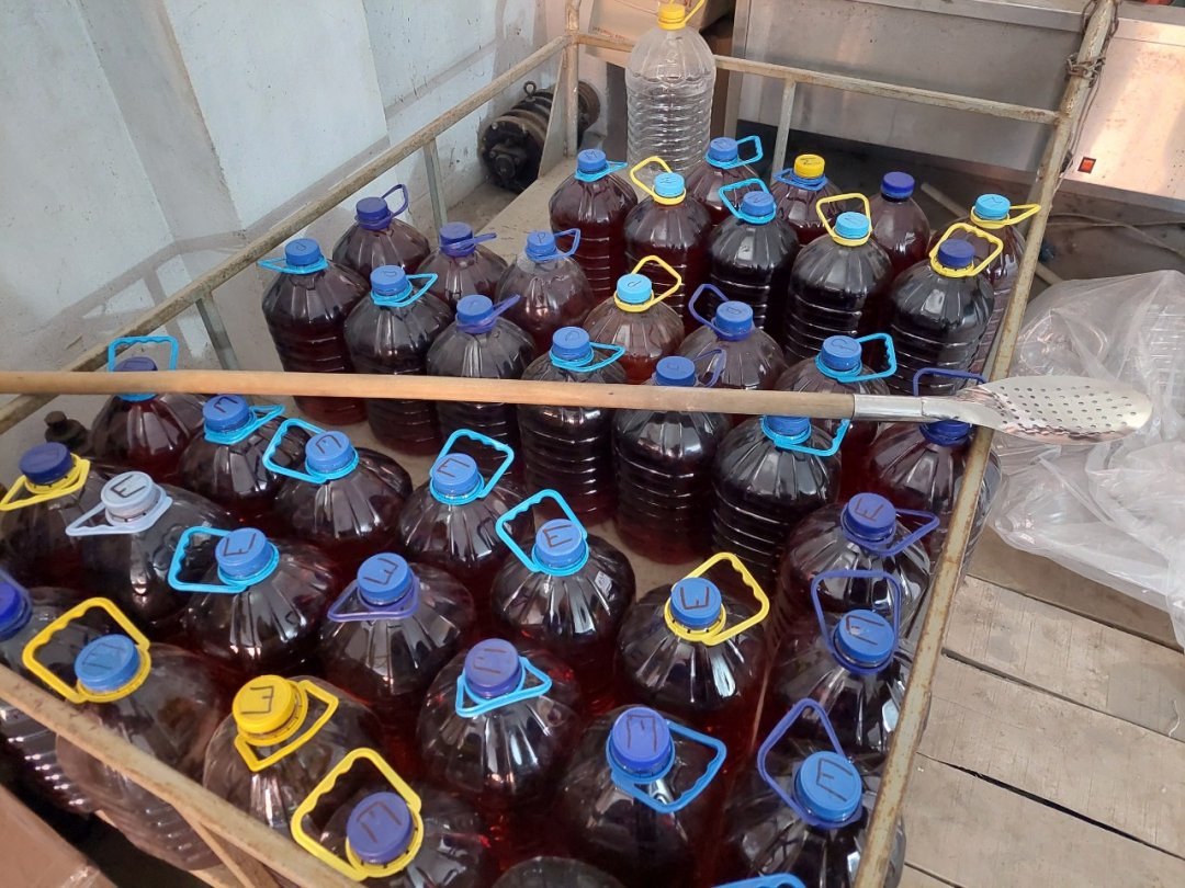Из домовладения гражданина во время неотложного обыска в общей сложности изъяли 1985 литров похожей на водочную и коньячную жидкости, разлитой в пластиковую тару разного объема, и 6326 пачек сигарет разного наименования, без марок акцизного сбора.