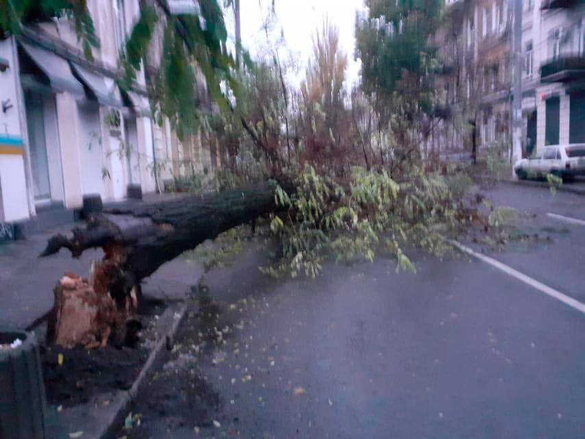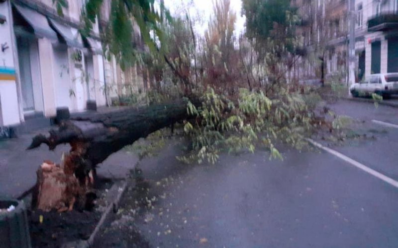 На Канатной упавшее дерево ненадолго перекрыло движение транспорта