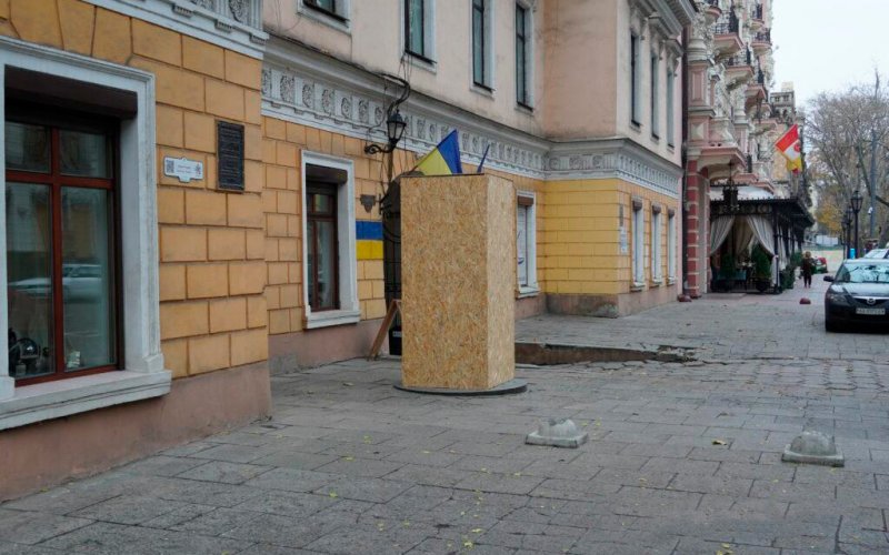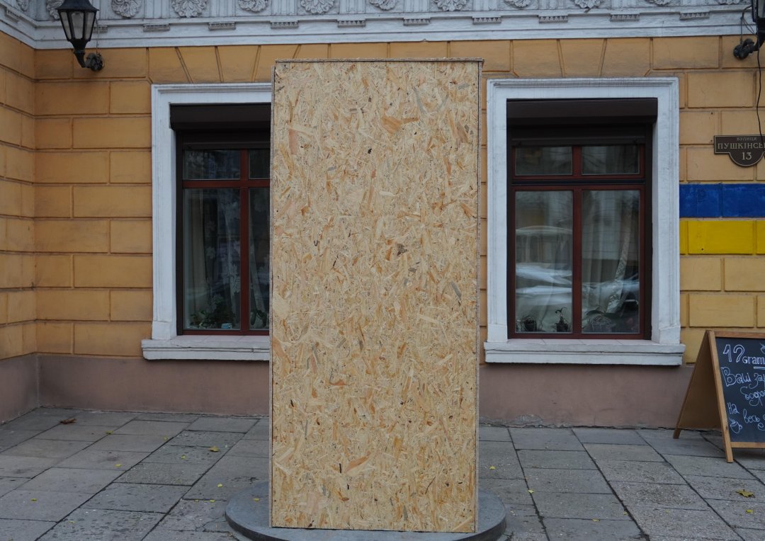 Памятник находящейся на одноименной улице классику русской литературы Александру Пушкину спрятали за забором.