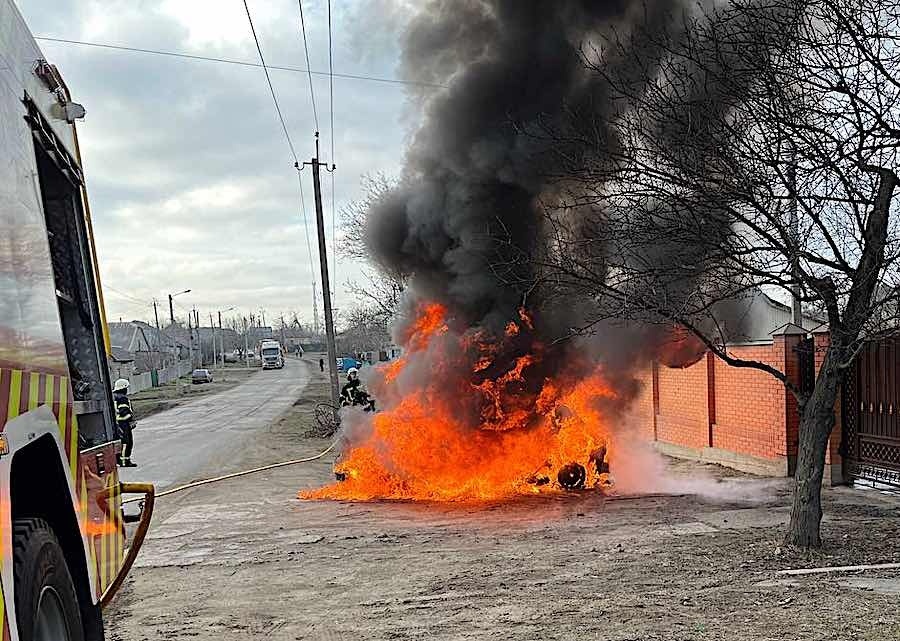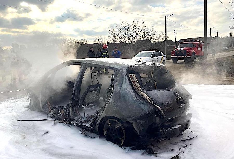 В Измаиле вчера днем вспыхнул электромобиль Nissan Leaf. Пожарным понадобилось всего 5 минут, чтобы добраться до места происшествия, и еще три минуты на локализацию пожара.