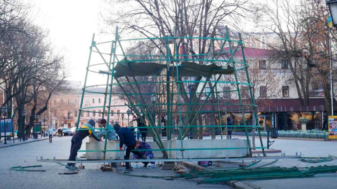 28 декабря, на Дерибасовской начались работы по монтажу главной Новогодней красавицы.