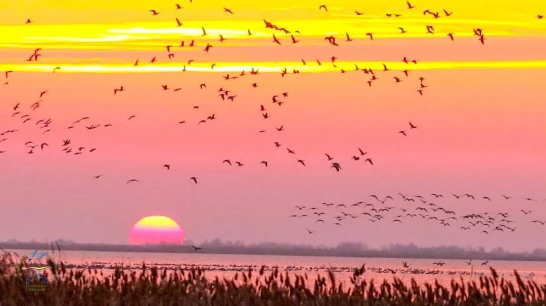 В НПП «Тузловские лиманы» запечатлели невероятный рассвет. В небе на фоне восходящего солнца видны стаи диких белоголовых гусей и краснозобых казарок, мигрирующих к нам из далекой тундры.
