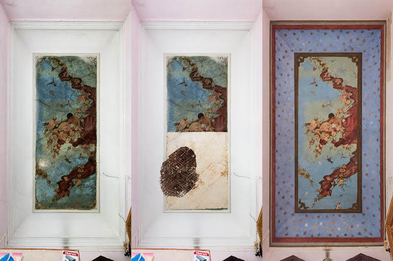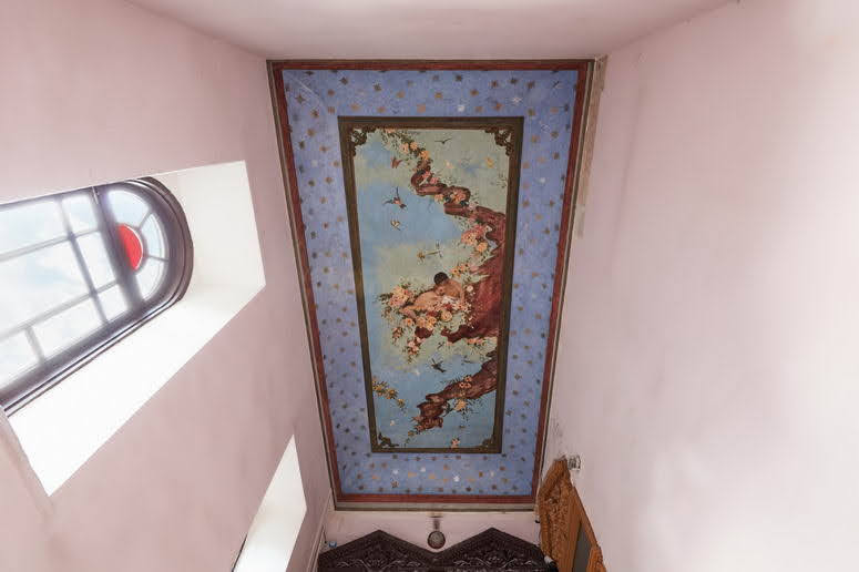 Уникальность полотна заключается в том, что это единственная в стране декоративно-станочная живопись, выполненная на полотне размером 170х430 см в 1900-х годах на потолке подъезда дореволюционного доходного дома наследников Гольдштейна.