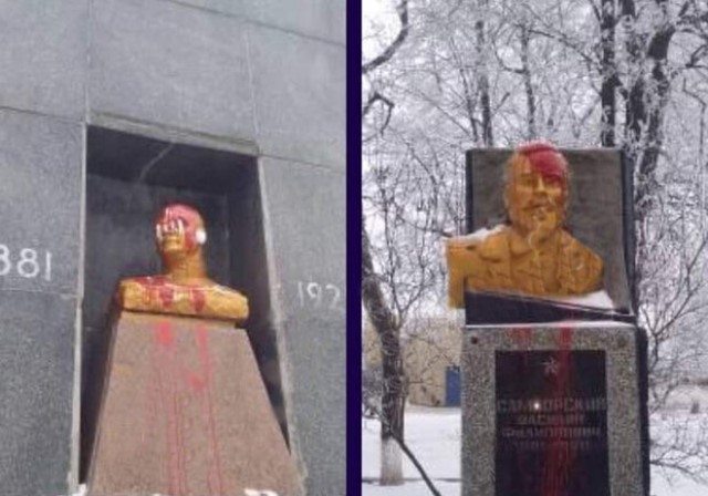 Так, в минувшее воскресенье в городе Подольск вандалы облили краской памятники Котовскому и Самборскому.