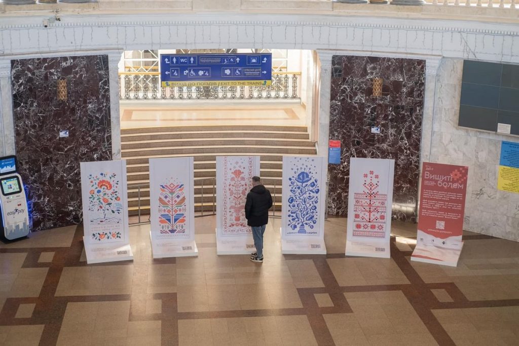 На железнодорожных вокзалах Одессы, Днепра, Харькова, Сум и Чернигова открылась выставка «Вышитые болью» о сексуальном насилии военного времени.