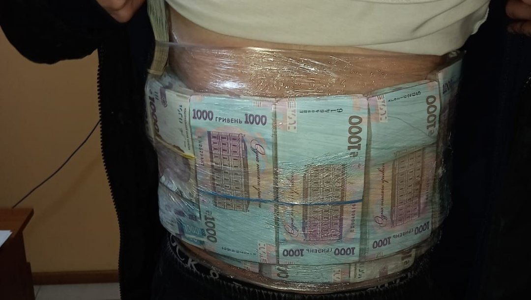 Перед прохождением контроля в пункте мужчина примотал к телу пищевой пленкой много купюр номиналом в 1000 гривен.