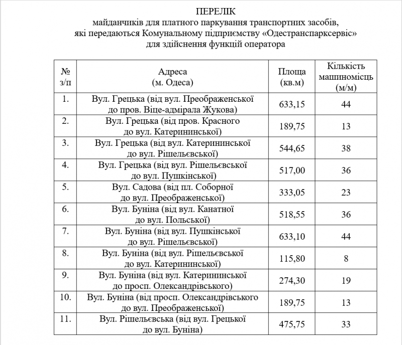 Площадки для парковки будут обслуживать КП «Одестранспарксервис». На Греческой и Бунине запланировано 307 машиномест. Такое решение было принято 30 марта на заседании одесского исполкома. Планируется, что от новых локаций бюджет города будет получать около 150 тысяч гривен ежемесячно.