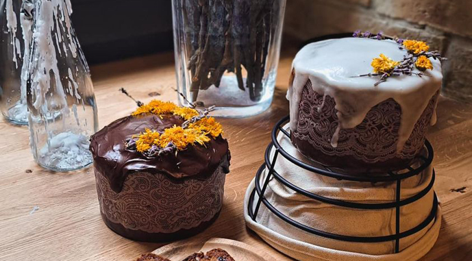 Кулич, поделились пекари, создан на основе 4-х видов органической муки: пшенной и гречневой, кукурузной и рисовой. К тесту добавляют сушеные яблоки, дыню, сливы, лаванду, календулу, золотой лен и мед собственного производства. Пасхальную выпечку покрывают черным органическим шоколадом без сахара.