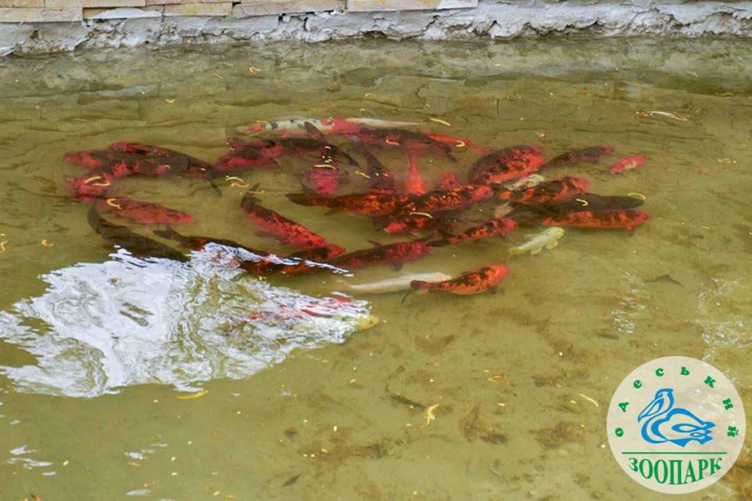 В центральный пруд зоопарка выпустили карпов Кои. Их каждый год на зимовку забирают в закрытое помещение.