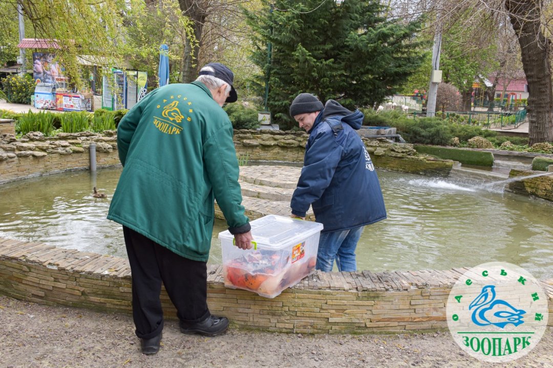 "Карпы перезимовали в закрытом помещении. Сейчас стало тепло и мы можем вернуть их к пруду. Приглашаем в зоопарк посмотреть на этих замечательных рыб", — говорится в сообщении.