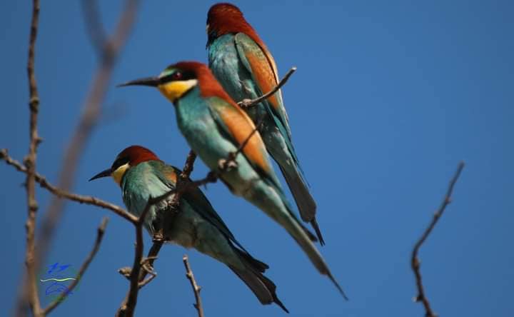 Эколог отметил, что впервые увидел пчелоедок в этом году 23 апреля, а за день их пролетает несколько тысяч. Как можно видеть на фото, это птицы с невероятно ярким оперением, к тому же они специфически поют, перекликаясь.