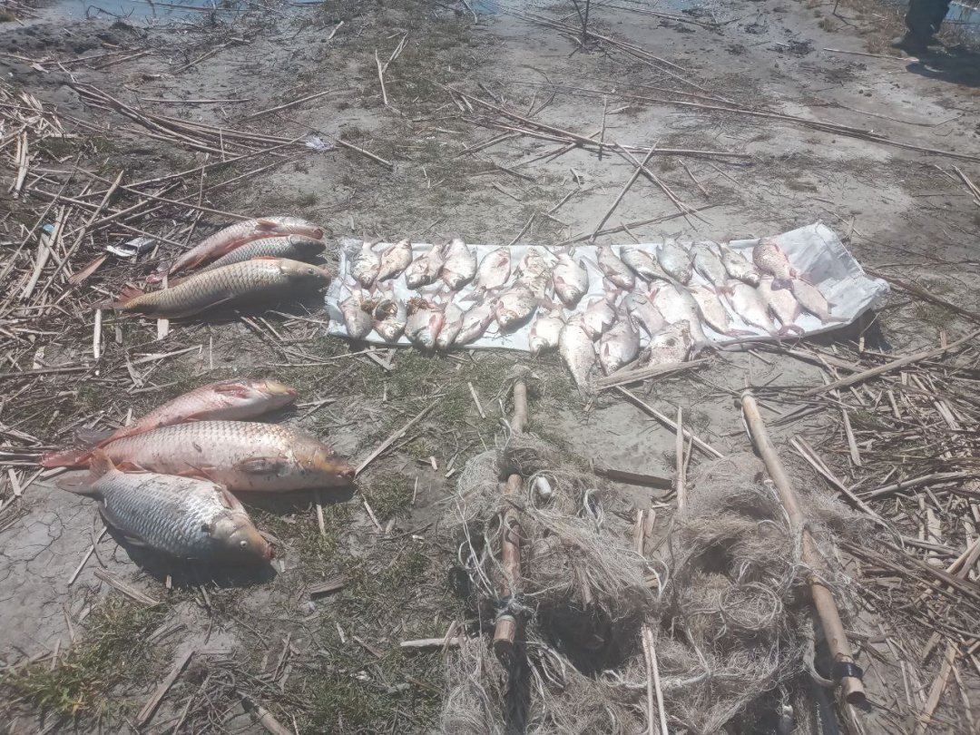 Правонарушитель рыбачил на озере Катлабух. С помощью запрещенного орудия ловли — сетки — он выловил 29 лещей, 6 сазанов, 1 карася и 4 рака.