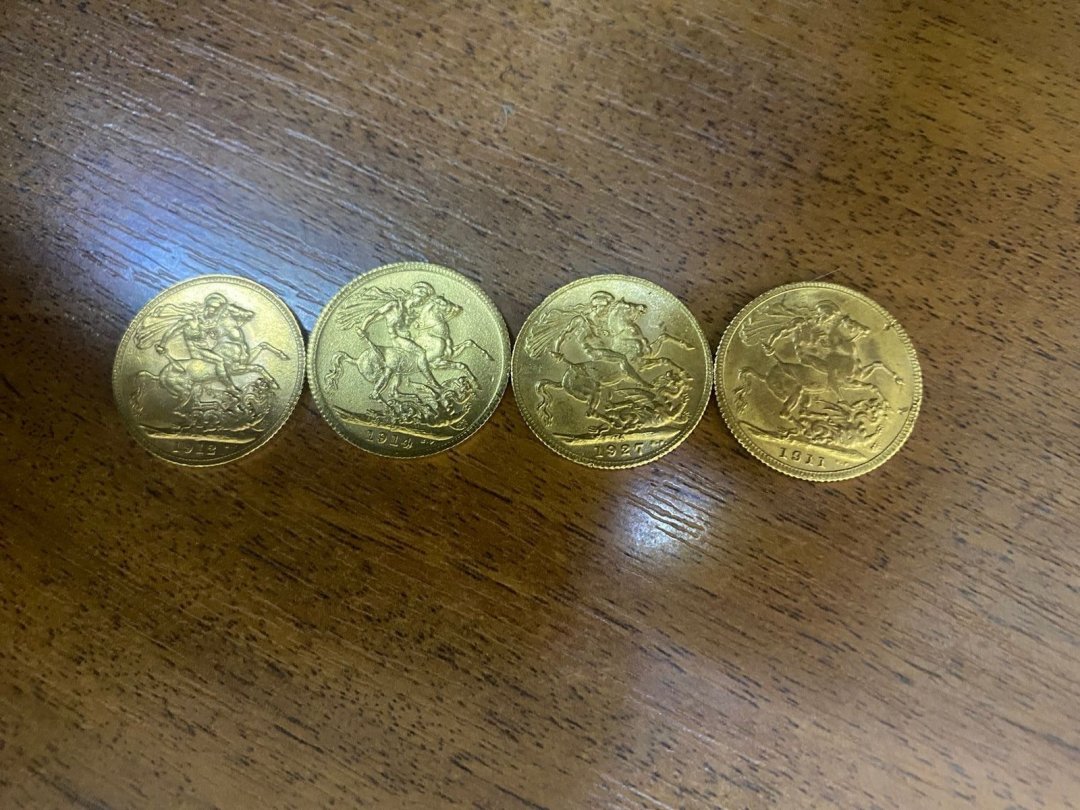 Всего найдено четыре монеты выпуска 1911, 1912, 1914 и 1927 годов. Предварительно известно, что это монеты Соверен Георга V, еще называемые "главными монетами мира".