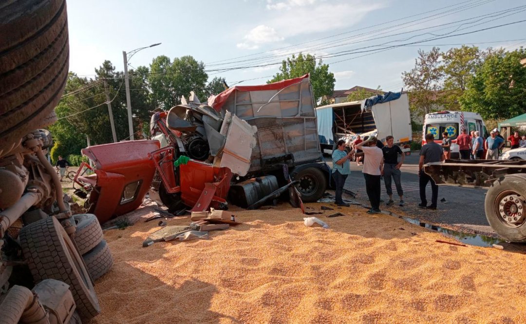 На въезде в село Броска Измаильского района произошло масштабное ДТП: дорогу не поделили два грузовика.