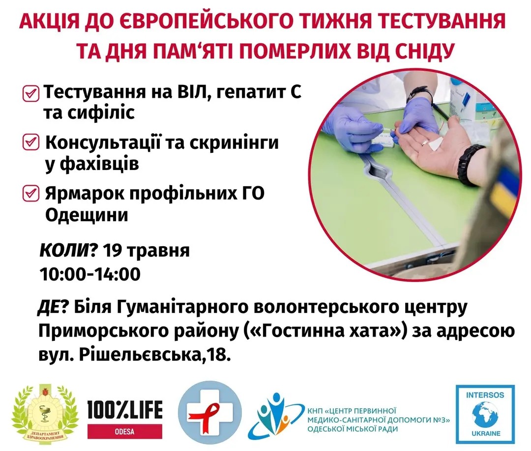 Мероприятие пройдет с 10:00 до 14:00 по адресу ул. Ришельевская, 18 (возле Гуманитарного центра Приморского района). Важно отметить, что тестирование будет проводиться конфиденциально, безболезненно и бесплатно.