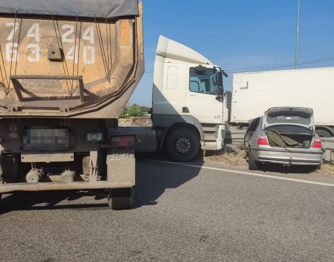 Столкнулись грузовик DAF с полуприцепом и легковые автомобили Ford и BMW.