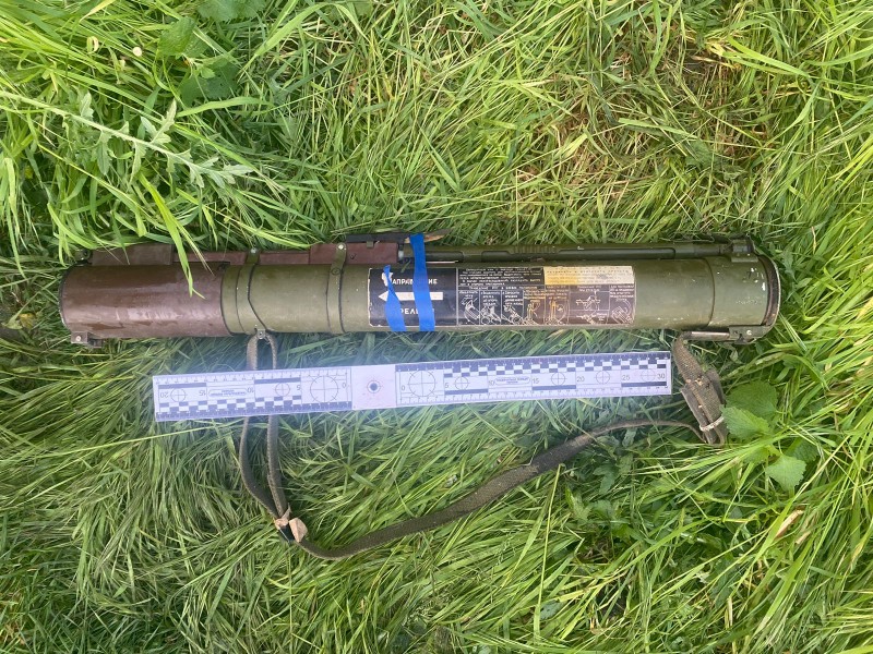 Во время обыска во дворе рядом с одним из хозяйственных построек был найден тубус, внешне похожий на ручной противотанковый гранатомет. Кроме опасного предмета, полицейские обнаружили 400 граммов артиллерийского пороха, 17 патронов калибра 5,45 мм для огнестрельного оружия и наркотическое вещество растительного происхождения — каннабис, который, по словам хозяина, был приобретен для личного использования. На место происшествия вызваны следственно-оперативная группа и специалисты взрывотехнической службы.