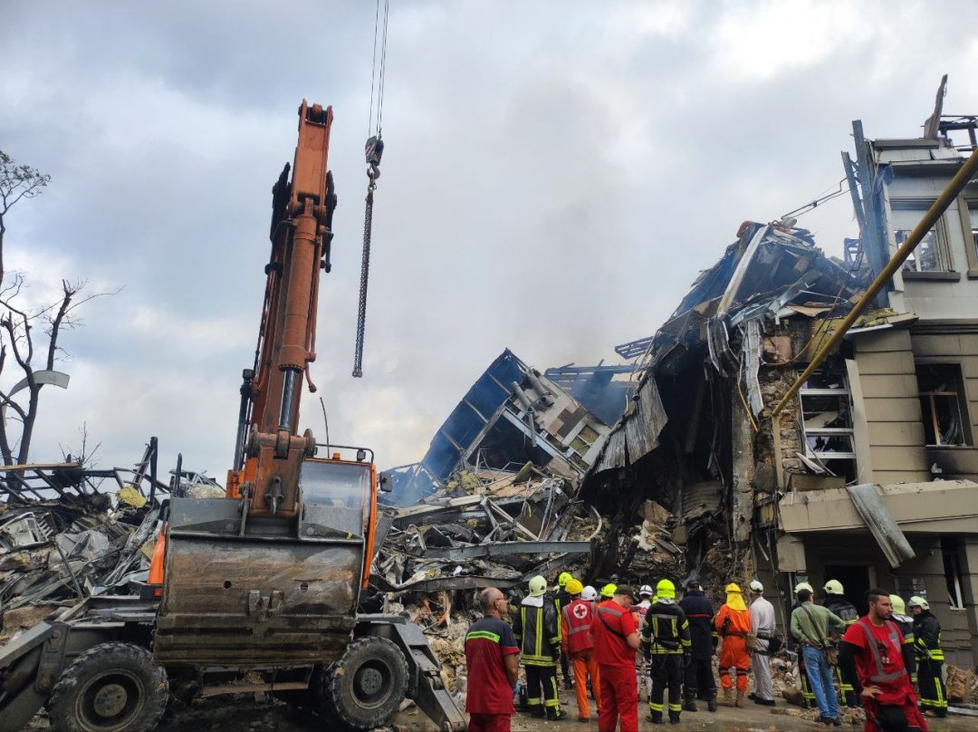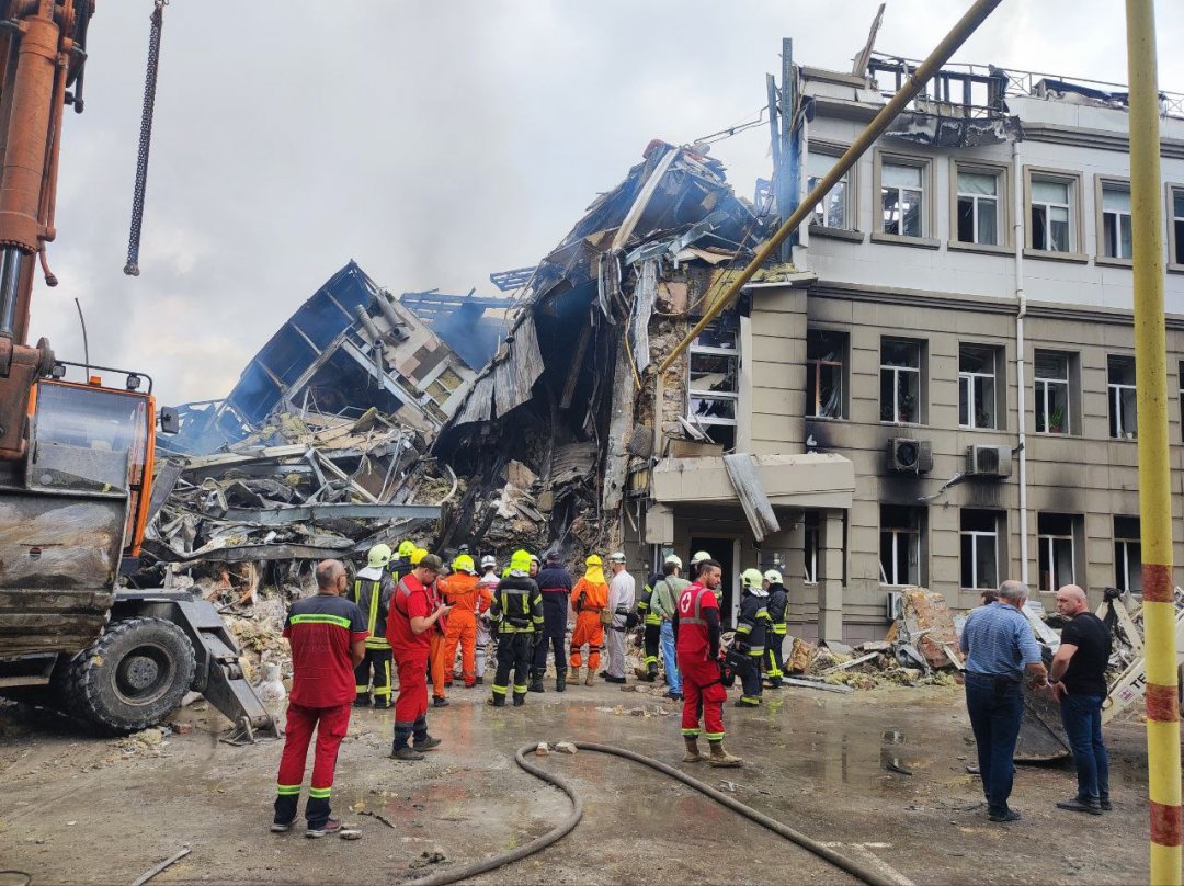 Во время ракетно-дроновой атаки на Одессу был разрушен головной офис банка "Восток" на Канатной. Спасатели разбирают завалы.