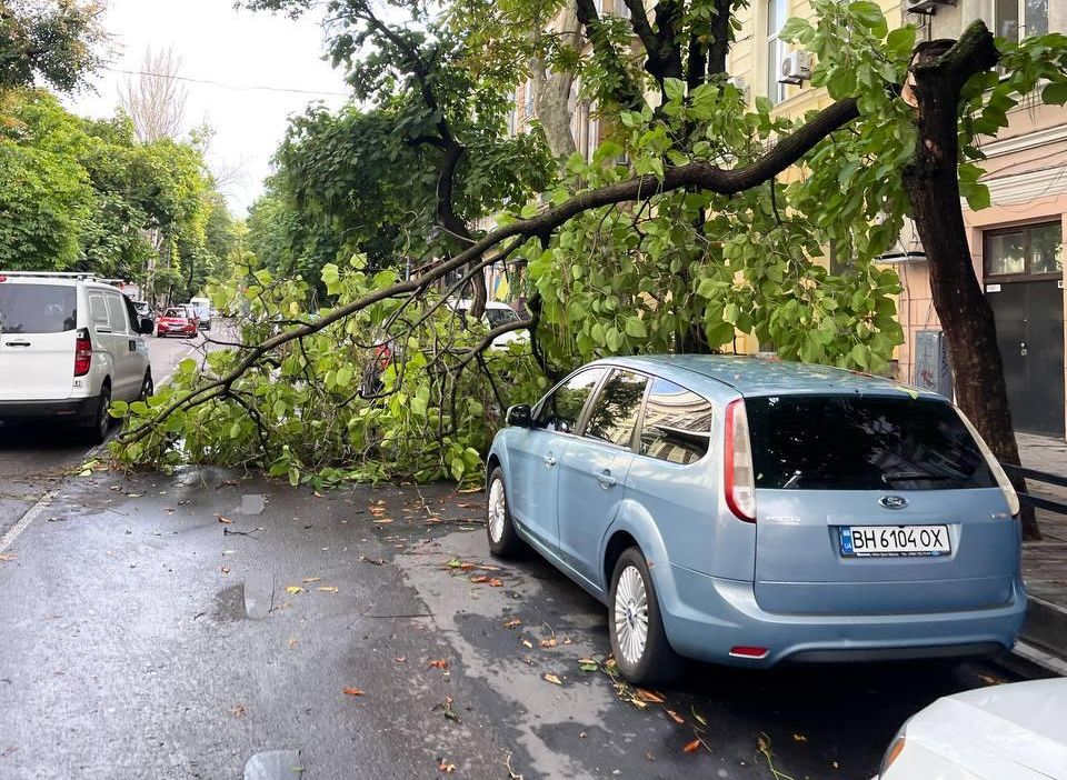 20 июля гроза и шквальный ветер свалили в Одессе деревья.