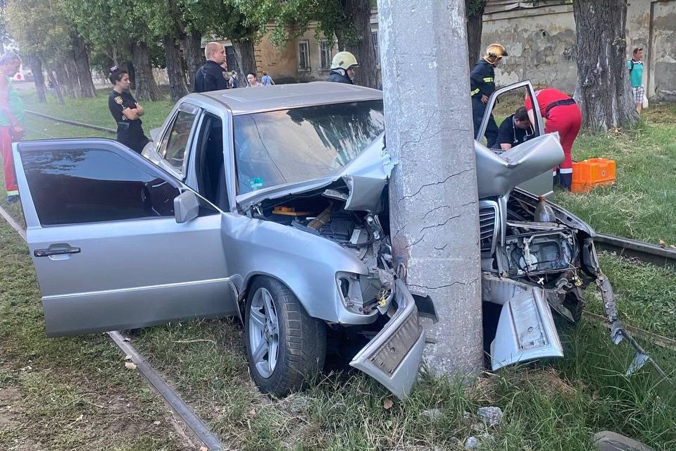 По предварительной информации, водитель Мерседеса не справился с управлением и врезался в столб.