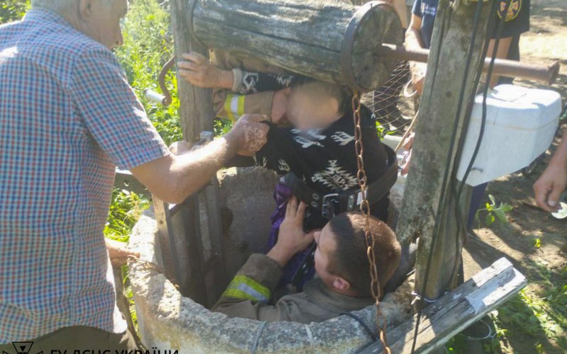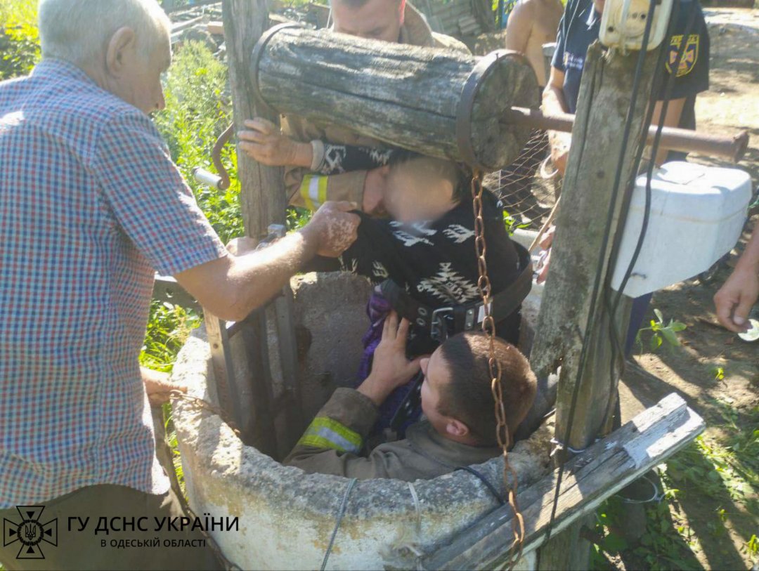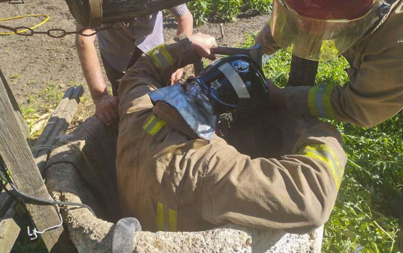 Специалисты ГСЧС с помощью штурмовой лестницы и спасательной веревки получили гражданку 1956 года рождения, из колодца глубиной 4 метра на поверхность.