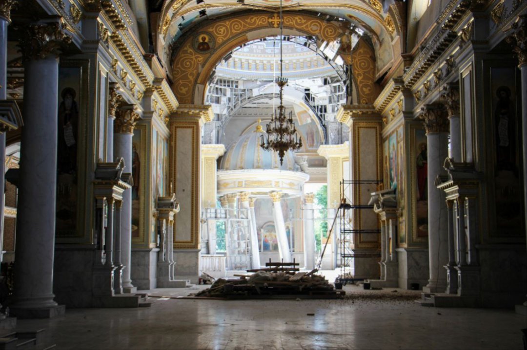 В Одессе приступили к консервации Спасо-Преображенского кафедрального собора, частично разрушенного в ночь на 23 июля этого года, около трех недель назад.