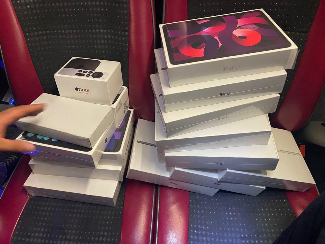 Рейсовый автобус возвращался в Украину через пункт пропуска «Рени – Джюрджюлеш». Во время погранично-таможенного контроля на дне отсека для инструментов нашли пять айпадов, а по боковой обшивке под раковиной – 13 айпадов разной модификации, 2 медиаплеера Apple TV 4 K и двое часов Apple watch ultra.