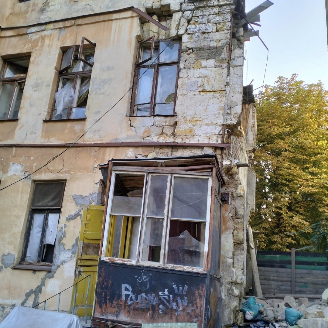 Хотя он с незапамятных времен аварийным и по камушке падает постоянно, сегодня было страшновато. Трещины, вызванные прилетом, разошлись. И вот результат, – написала Ирина.
