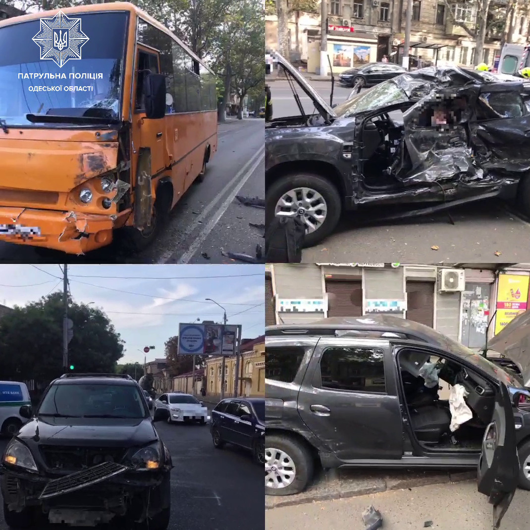 Днем 31 августа в Одессе на пересечении улиц Мясоедовской и Богдана Хмельницкого произошло ДТП с участием двух легковых авто и маршрутного автобуса, в результате которого серьезные травмы получили два человека.