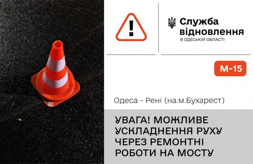 С 06:00 часов утра 18.09.2023, на мосту, который находится на 97 км (возле с.Николаевка-Новороссийская) автомобильной дороги М-15 Одесса - Рени (на г. Бухарест), будут выполняться аварийно-ремонтные работы.