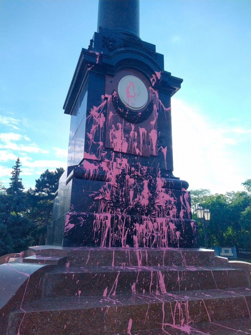 Александровскую колонну, расположенную в парке Шевченко, неизвестные сегодня облили краской – это произошло не впервые.
