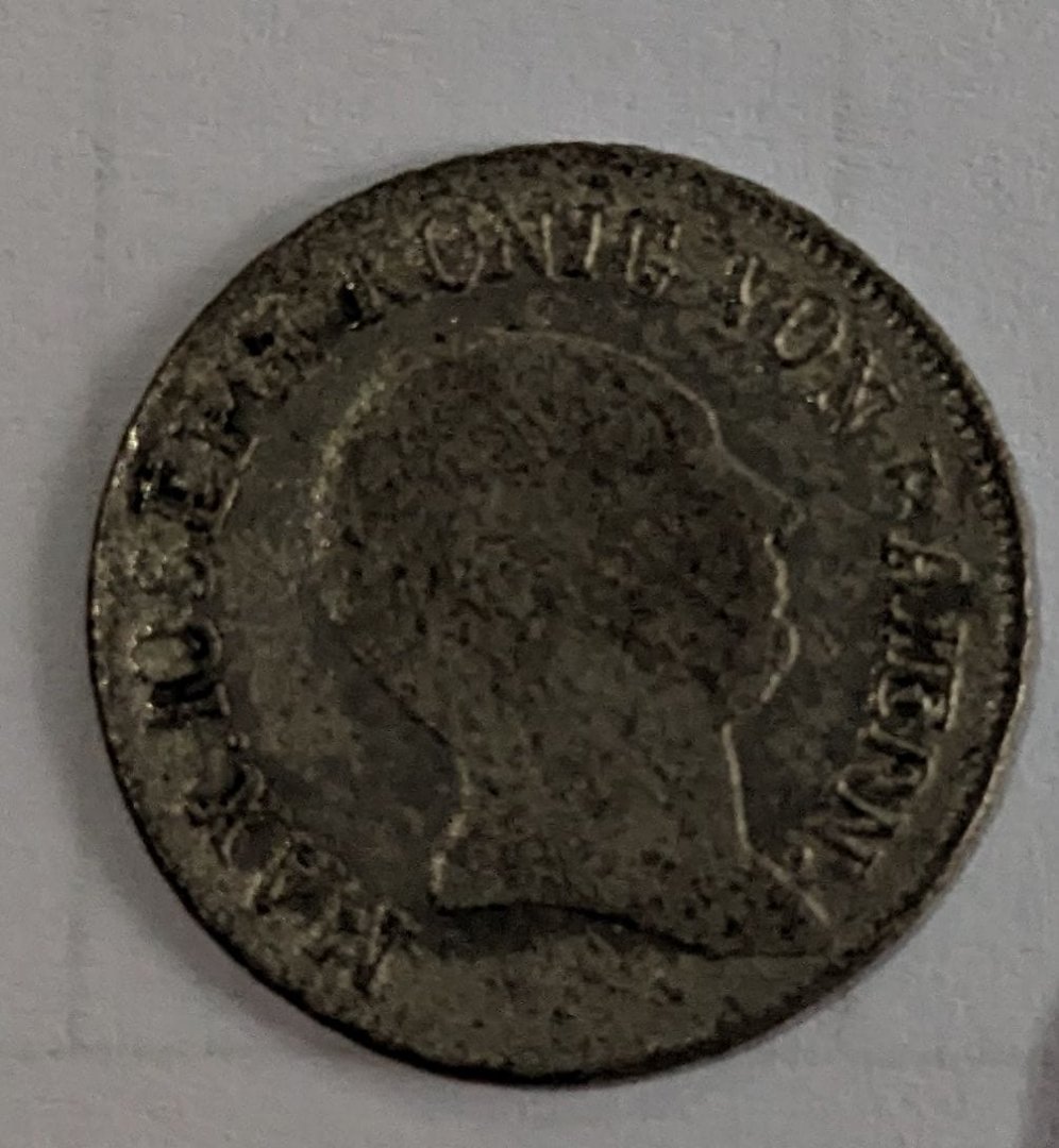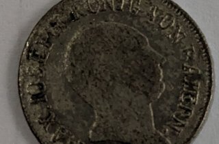 Это монета 1808 королевства Бавария стоимостью 6 крейцеров. Связанна монета, скорее всего, с первыми поселенцами Сараты. Известно, что одна часть колонистов прибыла именно из Баварии.