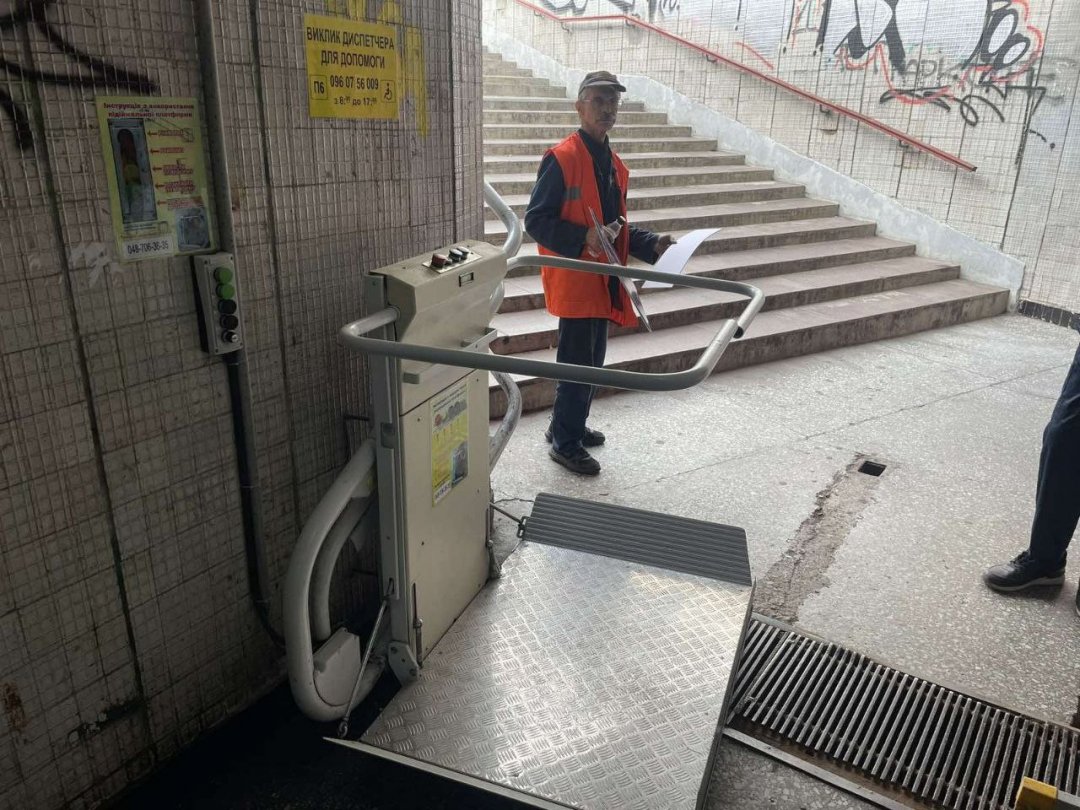 Ночью неизвестные вандалы снова повредили электрический подъемник для людей с инвалидностью, расположенный в одном из подземных переходов на Привокзальной площади в Одессе.