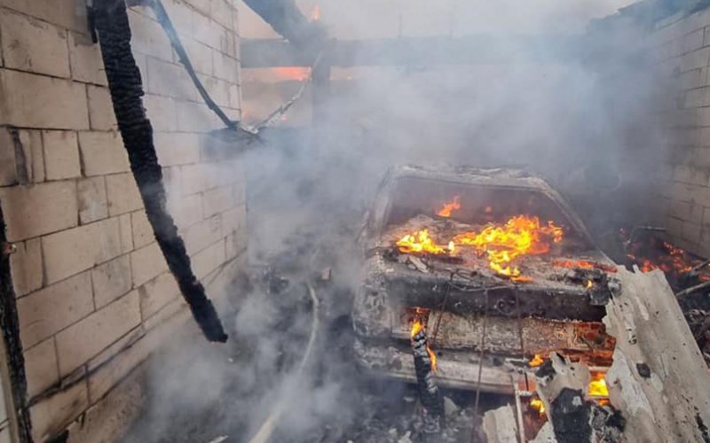 Горел одноэтажный дом, крыша гаража и легковой автомобиль Toyota, через час пожар был ликвидирован, распространение огня на соседние здания удалось не допустить.