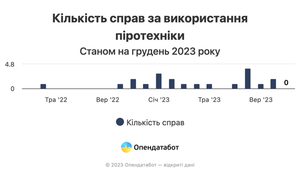По меньшей мере, в 21 случае украинцы получили наказание за использование пиротехники, в частности, салютов с начала боевых действий. Несмотря на запрет, некоторые граждане продолжали пользоваться пиротехническими средствами для развлечения. В подавляющем большинстве дел нарушители получили административные наказания и уплатили штрафы от 51 до 34 тысяч грн. Однако имеются и случаи со сроками за решеткой. Одесситы заплатили больше штрафов, кроме того, один из горожан получил реальный срок в тюрьме – более 5 лет, что является самым суровым наказанием за такие действия.