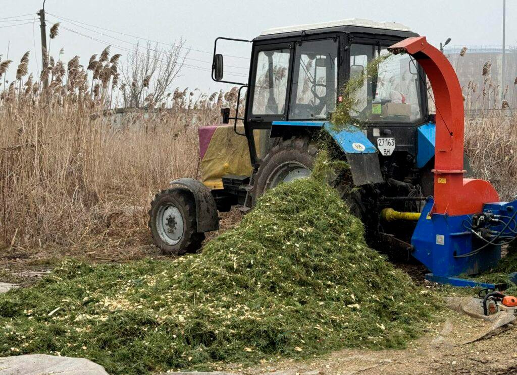 Комбайн перемалывает деревья и мелкую и большую треску. Впоследствии ее заливают водой и оставят этот компост перегнивать в течение года, затем используют в теплицах для растений и цветов », – рассказал Владимир Хрома.