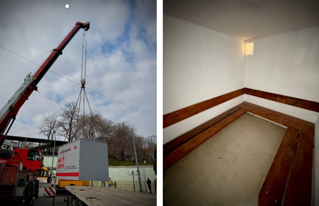 Сооружение имеет площадь 10 квадратных метров и вместимость до 15 человек. Укрытие изготовлено при поддержке Красного Креста.