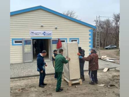 В новую амбулаторию была завезена мебель: шкафы, столы, тумбы и другое оборудование, предоставленное немецкой организацией медицинской помощи Action Medeor. Разгрузка мебели была произведена работниками центра первичной медико-санитарной помощи и рабочими по благоустройству поселкового совета с помощью Manitou.